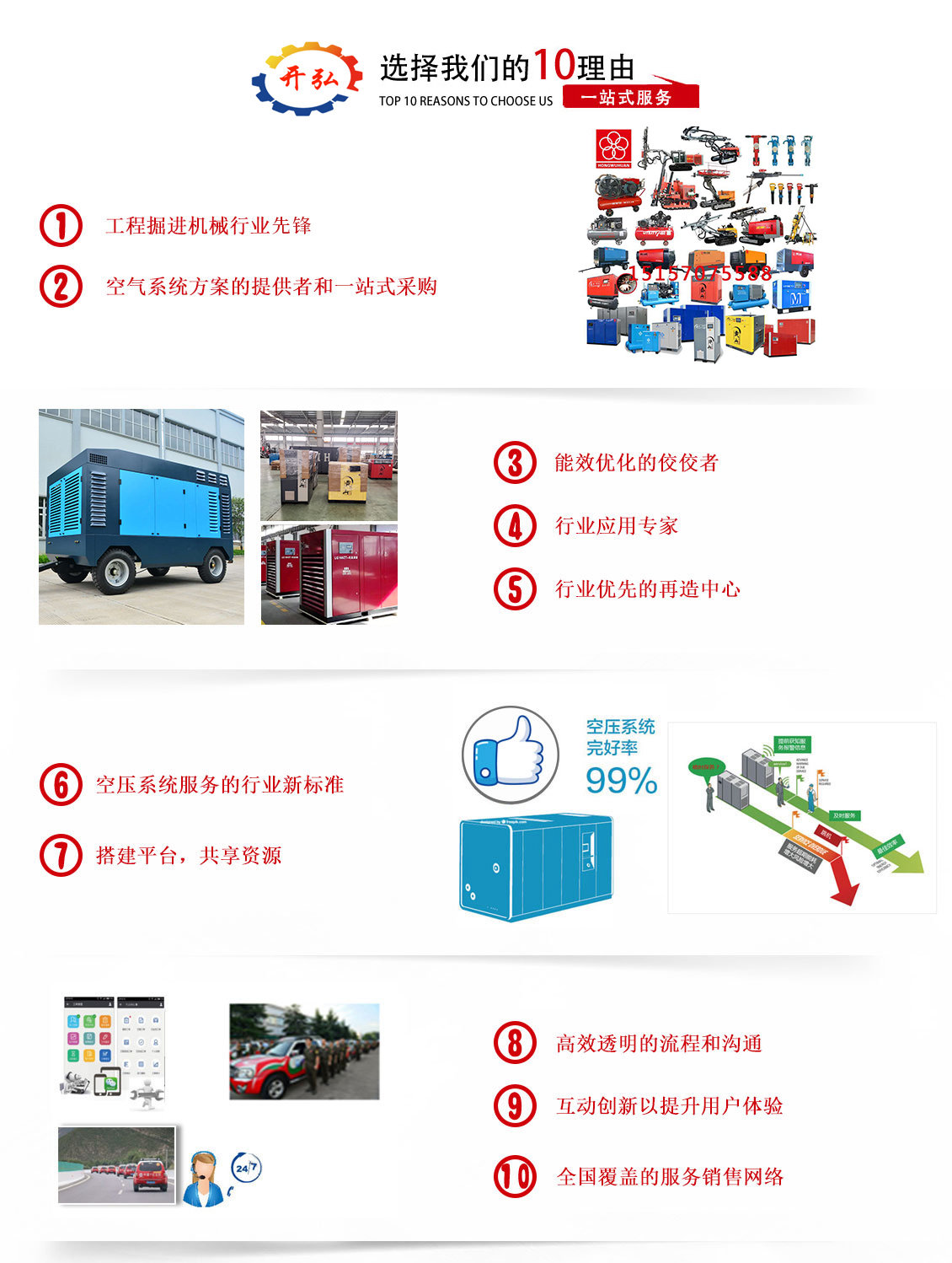 ? ? ? ? 我公司始終堅持紅五環(huán)經(jīng)營戰(zhàn)略,堅持中高端品牌空壓機、鉆機的經(jīng)營發(fā)展思路 ,專業(yè)于品牌空壓機、鉆機的銷售與維修服務(wù),并提供空壓機、鉆機維修及零備件供應(yīng)(鉆桿,鉆頭,沖擊器等鉆機配件;空氣濾芯、機油濾芯、油氣分離器、專用潤滑油、冷卻液……